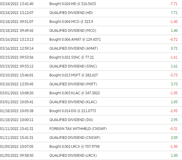 Due to my portfolio DRIP, I did however make a number of very minor transactions. As we can see, my portfolio now makes a handful of purchases automatically due to dividend reinvestment every quarter. These are very tiny purchases, but over time they will add up.